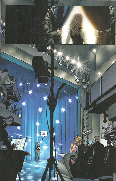 This is an in comic cover of the girl in the supersuit from the cover. Again, this cover tells me nothing with the art. I have no idea who this girl or why I should care. Yes there is a paragraph of text but that is just a cop out. Pretty much, the paragraph is says she is taking part in Superhero Idol so she can get revenge on someone.